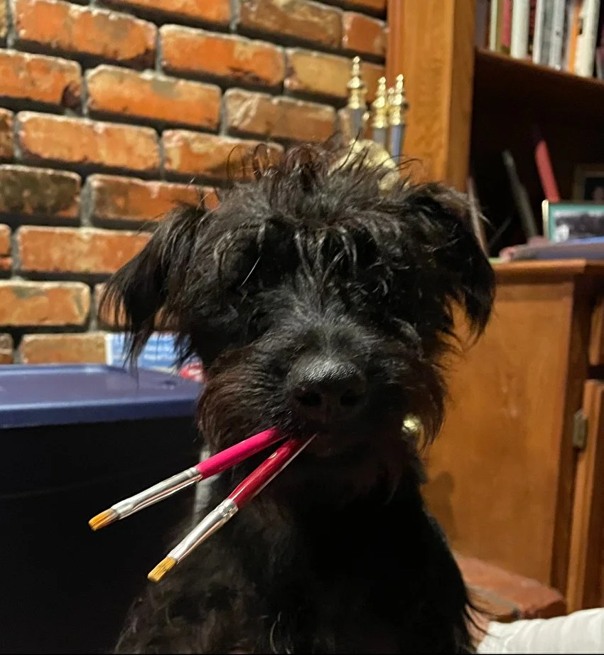 Below is a picture of my little helper at times, he lends some inspiration. He is a Patterdale Terrier and 3 years old.